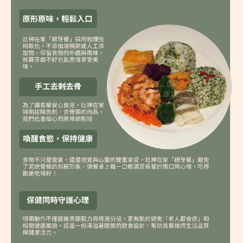 甜酸口味的軟嫩雞丁,好吃不柴,搭配鱈魚,細緻柔滑的魚肉入口即化,帶來海洋的清甜鮮香。嚴選山藥、藜麥、枸杞、南瓜等豐富食材,細火慢煮鎖住食材原味,每一口都滿載營養與溫暖。軟嫩適口、不加增稠劑,還原最自然的家常風味,讓長輩吃得輕鬆,吃得安心,更吃得開心!