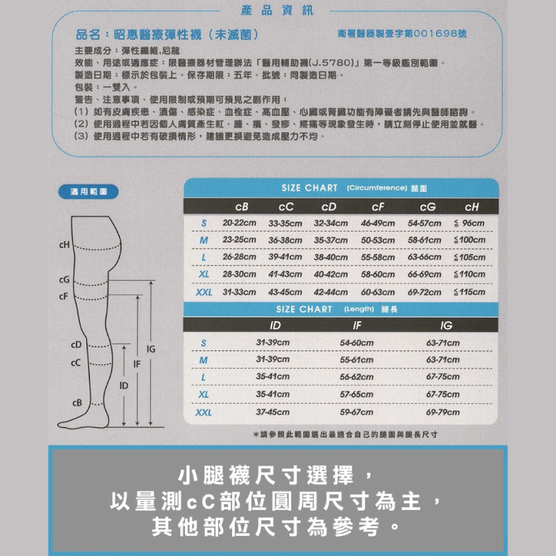 商品名稱:“昭惠”醫療彈性襪 (未滅菌)