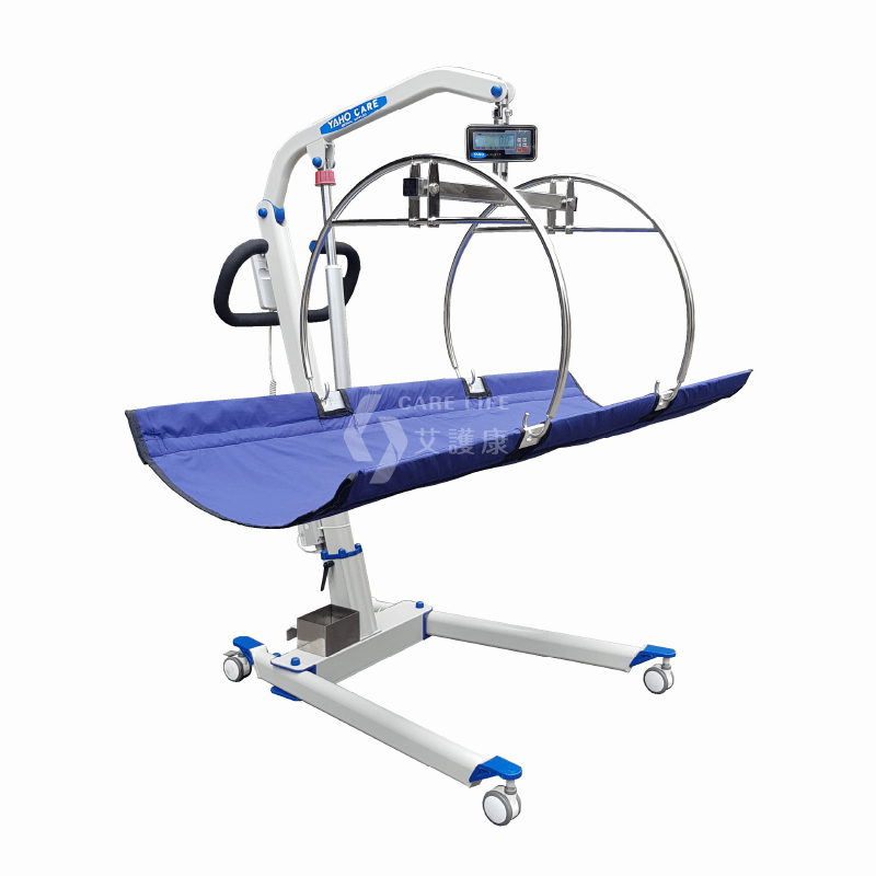 ●移位機主體骨架為鋁合金材質,非市面上一般鐵製骨架,使護理人員方便輕巧推動。