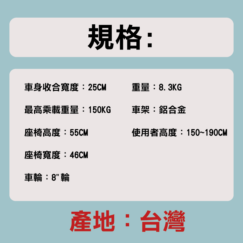 - 單手收折—收折後本體寬度僅25CM不占空間。