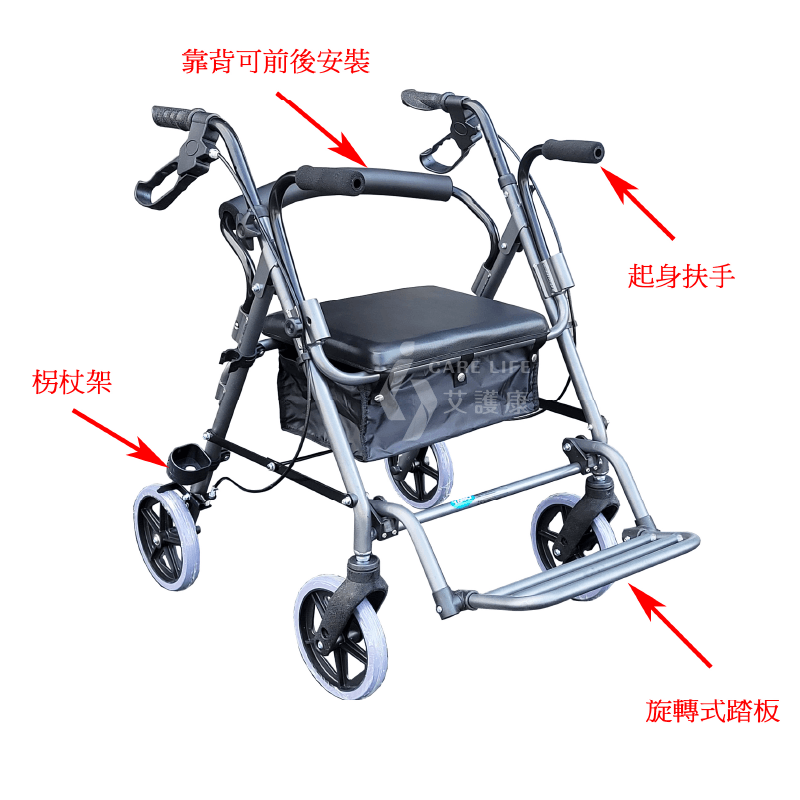 5. 附有柺杖置放架方便置放柺杖。