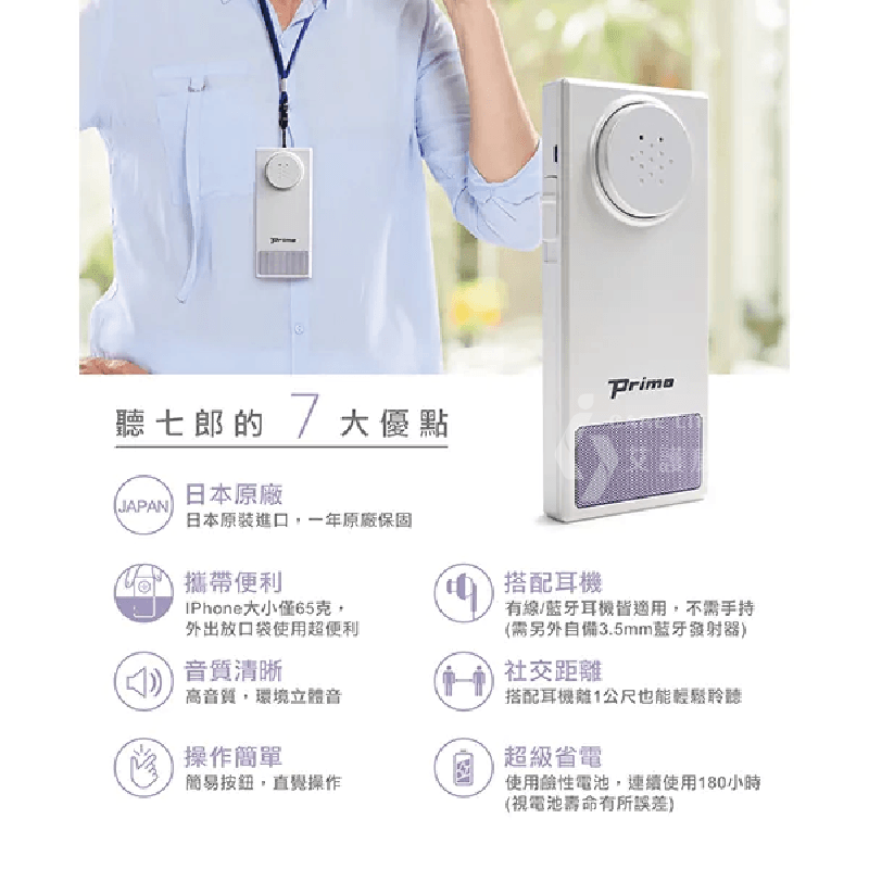 聽七郎手持式輔助溝通器、電池、掛繩、耳機、耳機套
