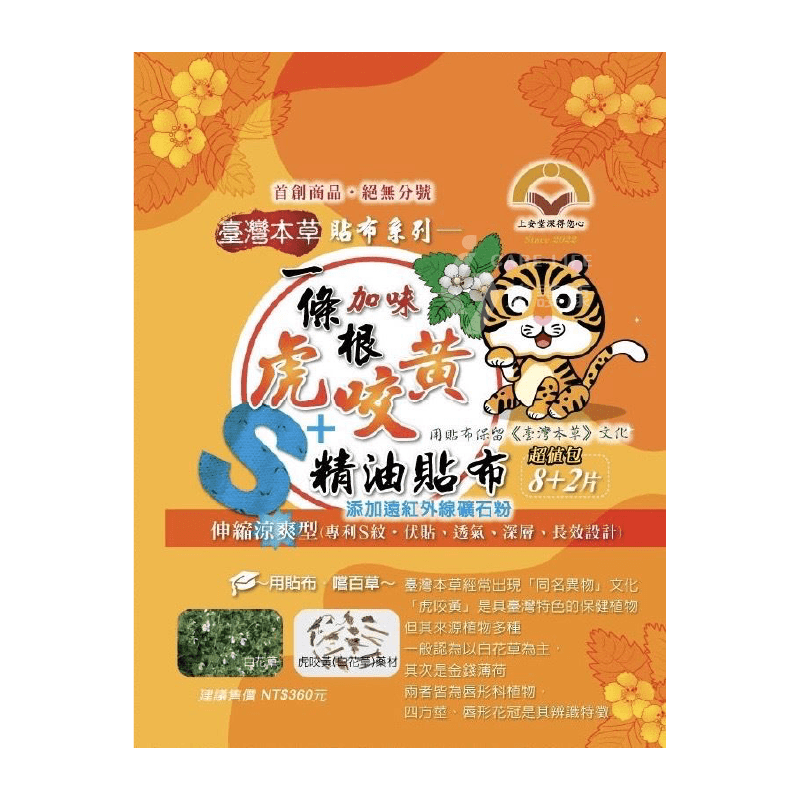 成分:白花草(虎咬黃)、金錢薄荷、金門一條根(闊葉野大豆)、薄荷精油、冬青樹精油、薰衣草精油、貼布基劑。