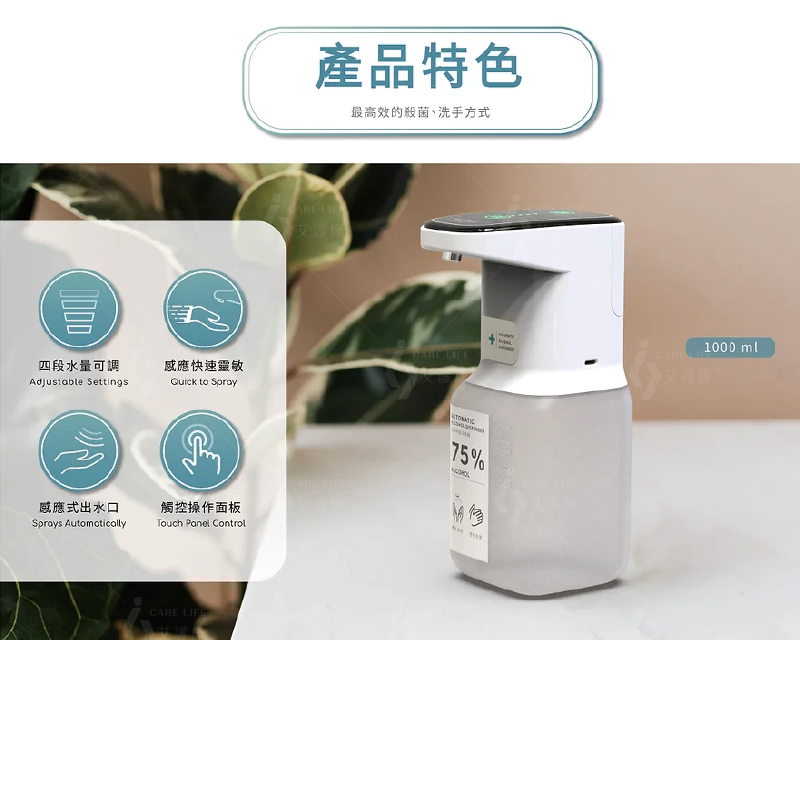 內容物:自動手指消毒器 x 1、AA 鹼性電池 x 4