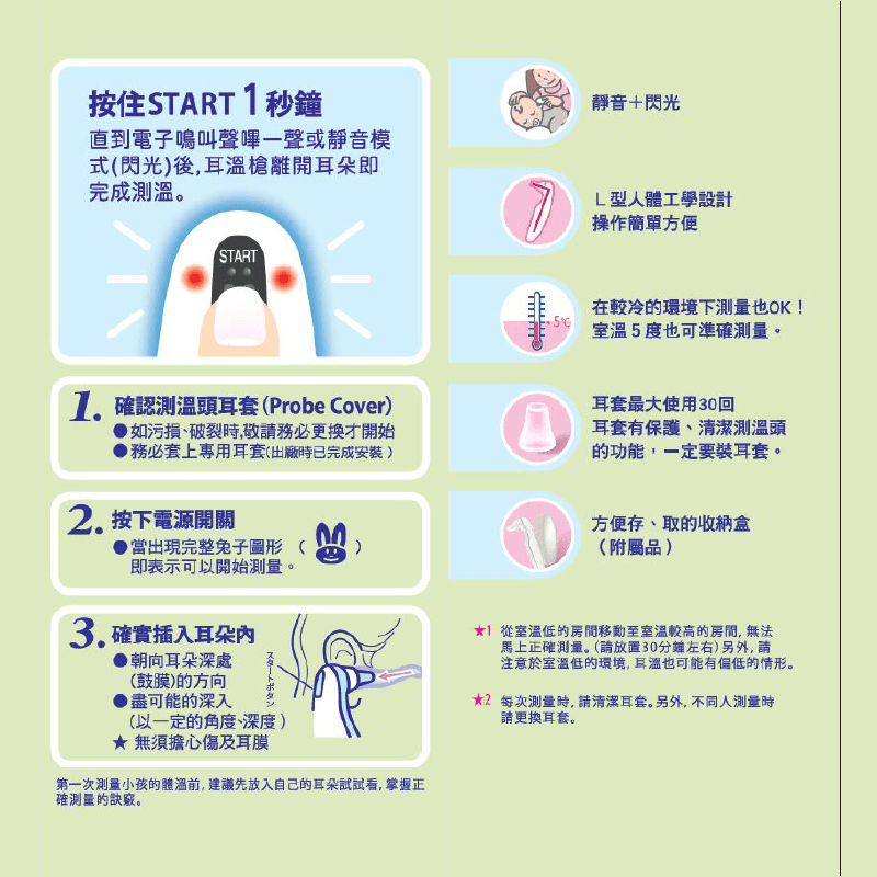 3.以嗶聲與亮燈告知測溫完畢。