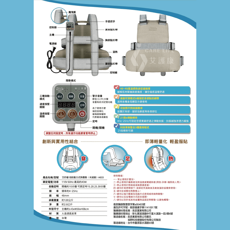產品名稱:艾你優 拍拍毯 多功能電動拍痰機