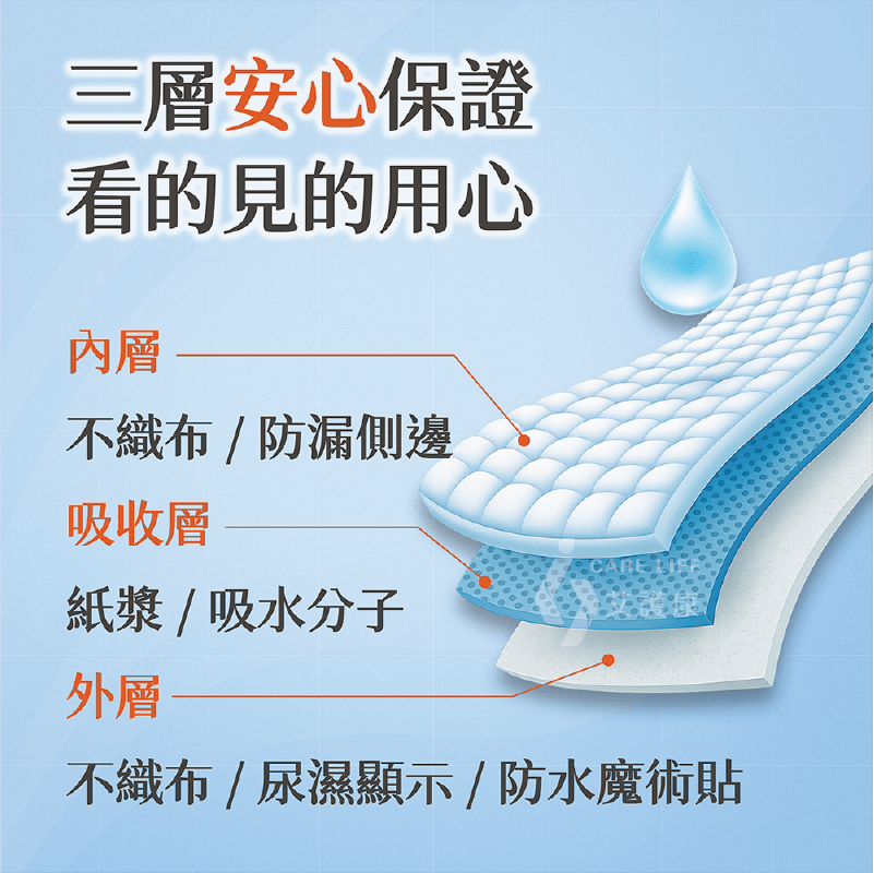 - 內層:柔軟不織布/防漏側邊
