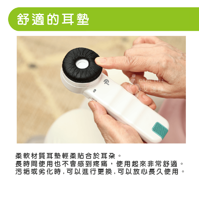 - 當耳機軟墊接觸到耳朵時,即可開始用,若耳機軟墊與耳朵中間有空隙時,會發出聲音回授